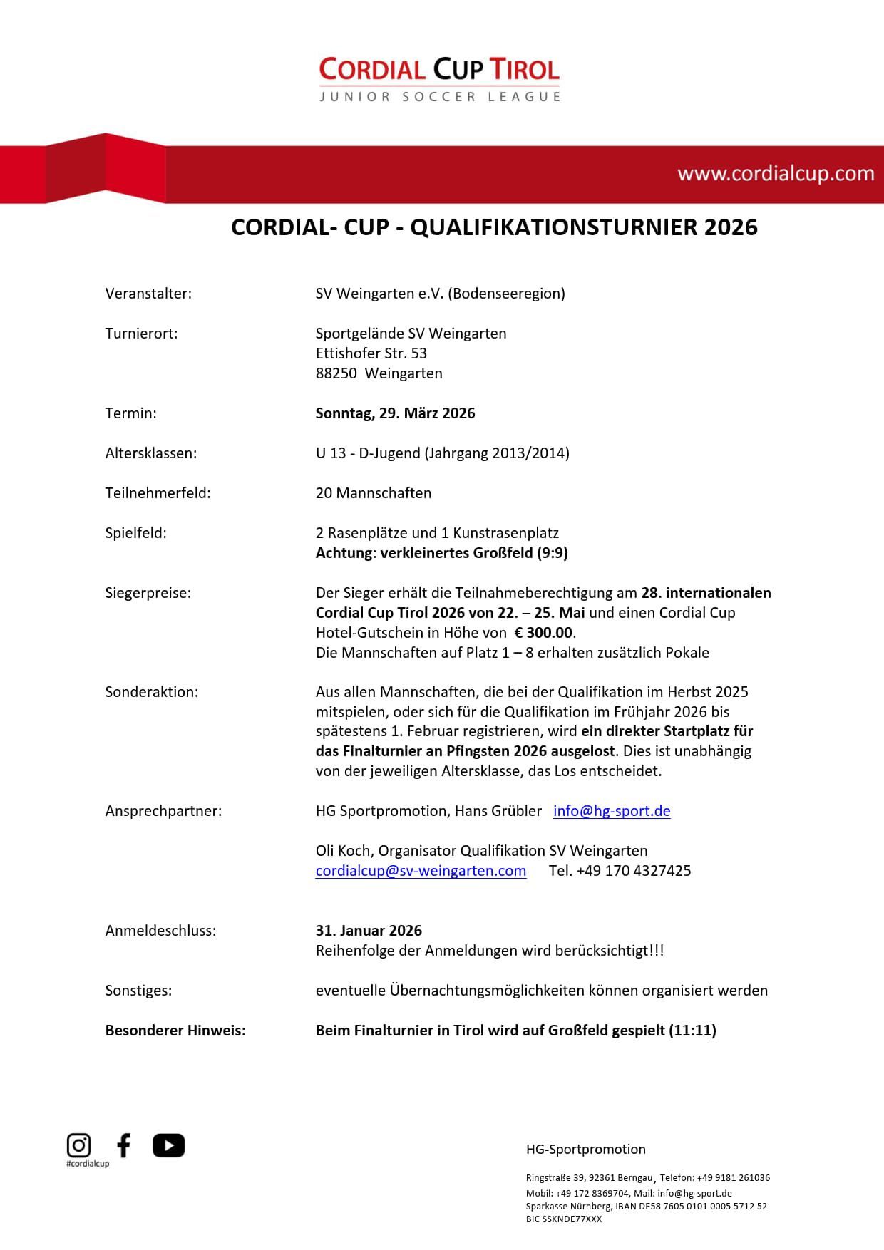 Cordial Cup Qualifikationsturnier U11 und U13 vom 28-29.03.2026